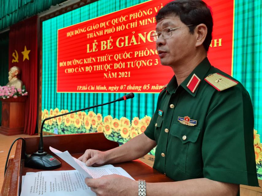 Tại lễ bế giảng, thiếu tướng Lê Ngọc Hải, Phó Tư lệnh Bộ Tư lệnh TP.HCM, Ủy viên Hội đồng giáo dục Quốc phòng – an ninh TP.HCM đánh giá cao công tác tổ chức, kết quả mà lớp học đã đạt được.