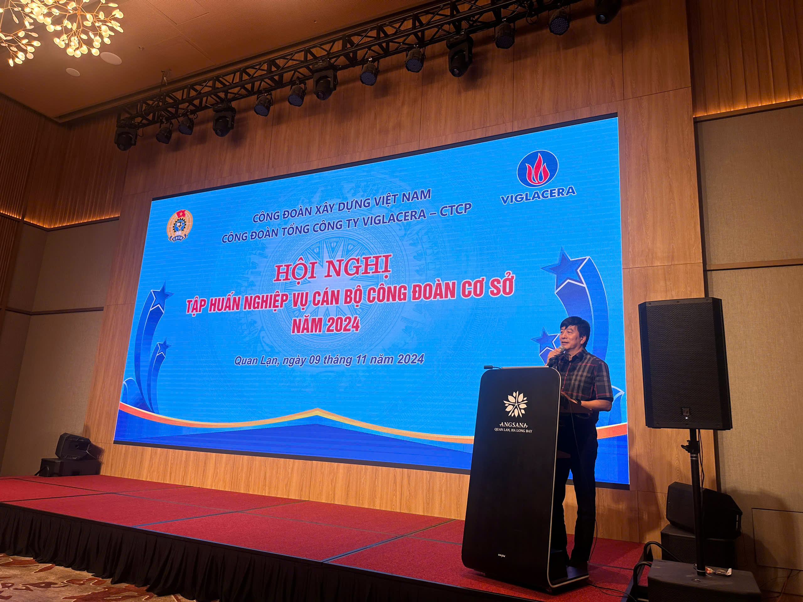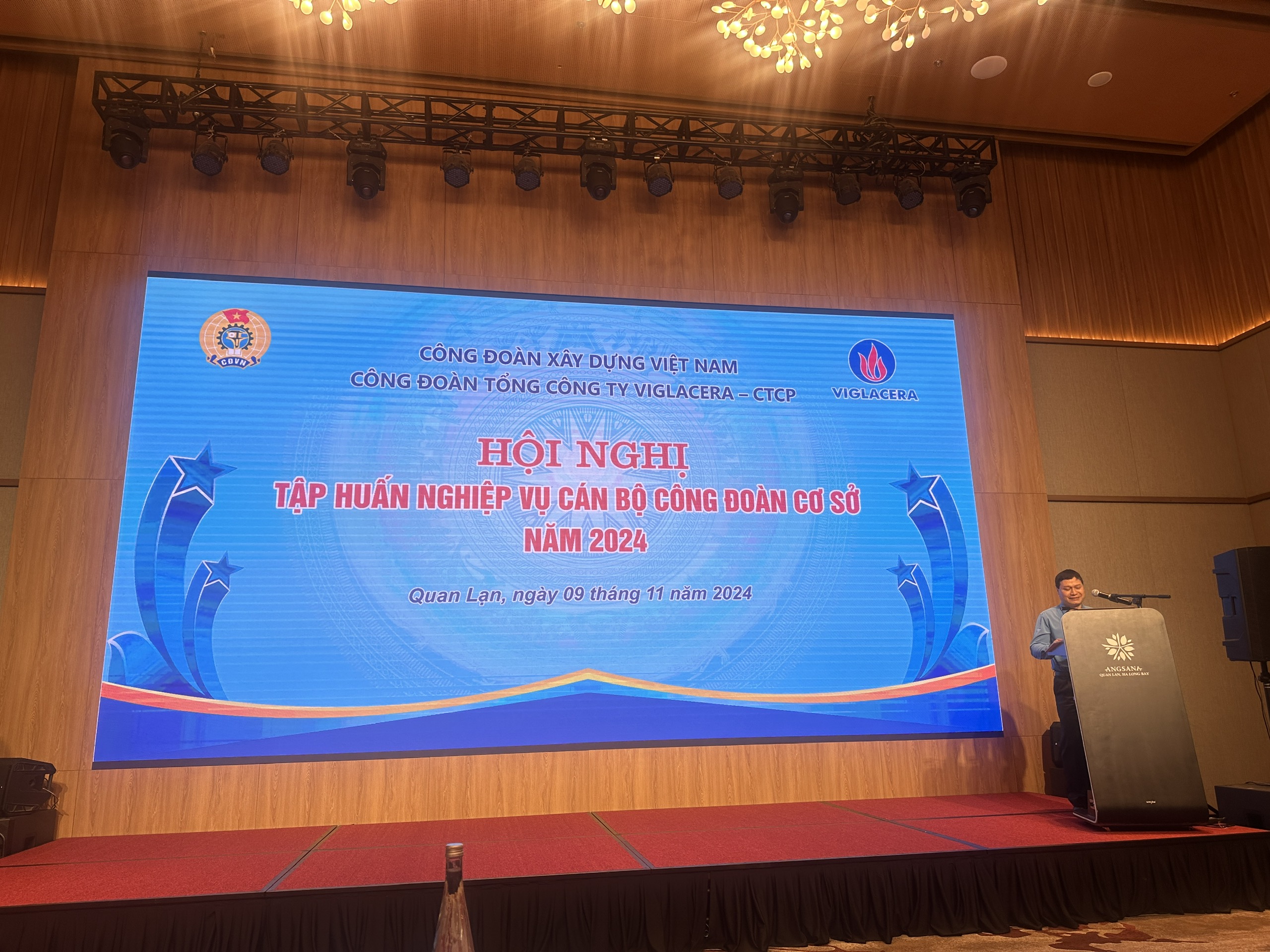 Ngày 9/11, tại Khu nghỉ dưỡng Angsana Quan Lạn, Ban Thường vụ Công đoàn Tổng công ty Viglacera – CTCP đã tổ chức Hội nghị Tập huấn nghiệp vụ cho cán bộ công đoàn Tổng công ty theo Chương trình “Nâng cao chất lượng đội ngũ cán bộ công đoàn”. Tới dự và chỉ đạo Hội nghị có đồng chí Nguyễn Thanh Tùng, Ủy viên Ban Chấp hành Tổng Liên đoàn Lao động Việt Nam, Chủ tịch Công đoàn Xây dựng Việt Nam, các đồng chí Phó Chủ tịch Công đoàn Xây dựng Việt Nam và các đồng chí Ủy viên Ban Thường vụ, Ban chấp hành Công đoàn Xây dựng Việt Nam (CĐXDVN).