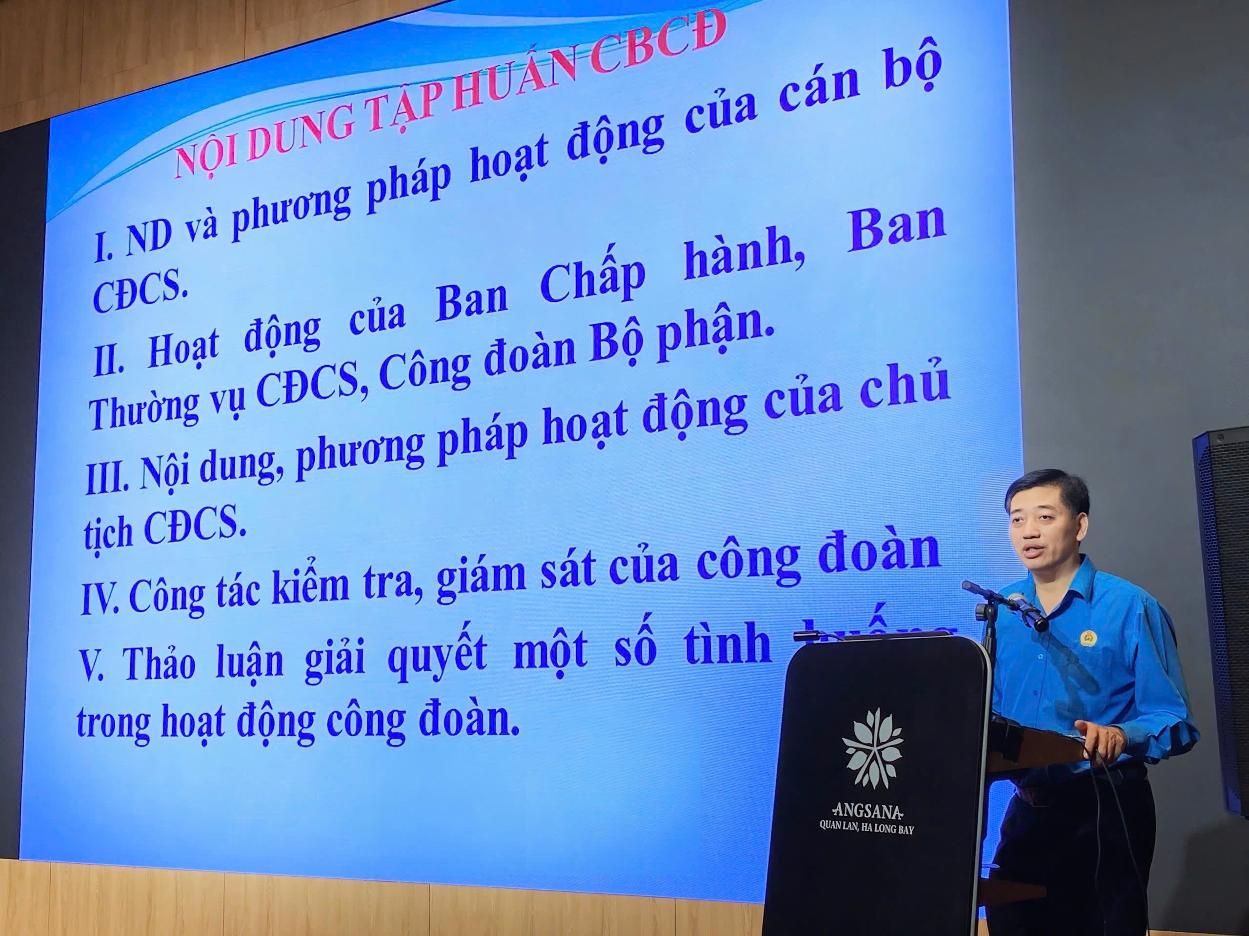 Đồng chí Đặng Ngọc Điệp – Phó Chủ tịch Công đoàn Xây dựng Việt Nam truyền đạt kiến thức tại lớp tập huấn