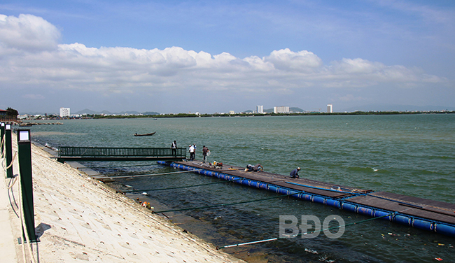 Hạng mục cầu phao, khu vực xuất phát dành cho các tay đua tham dự Grand Prix of Binh Dinh 2024, đang được gấp rút thực hiện. Ảnh: TRỌNG LỢI