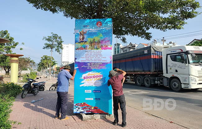 Hoạt động tuyên truyền cổ động trực quan Grand Prix of Binh Dinh 2024 và Tuần lễ Amazing Bình Định Fest 2024 ở các tuyến đường, khu vực diễn ra các sự kiện, chương trình bằng pa nô, băng rôn, cờ, phướn… cũng được Sở VH&TT và UBND TP Quy Nhơn tất bật triển khai.