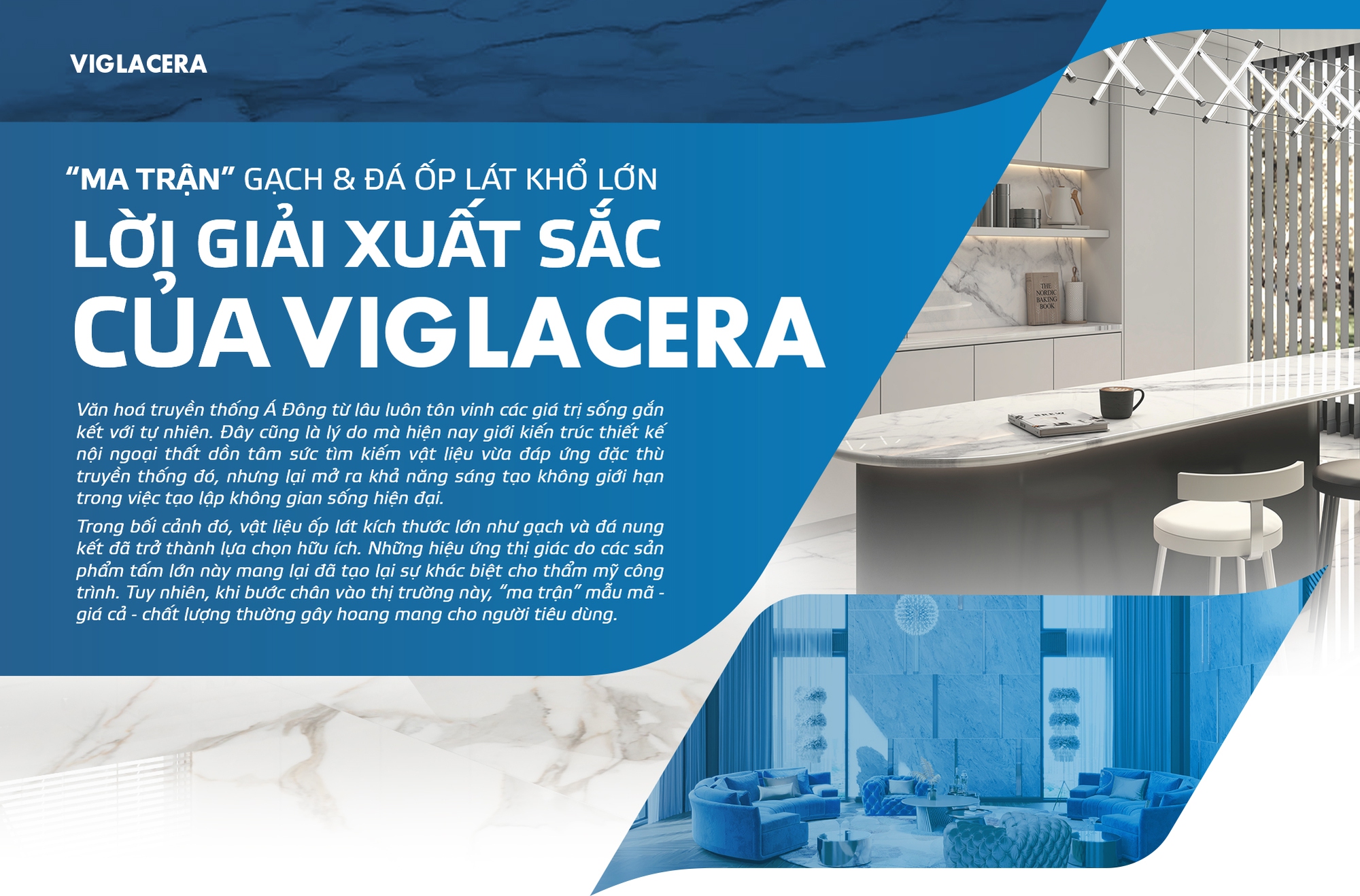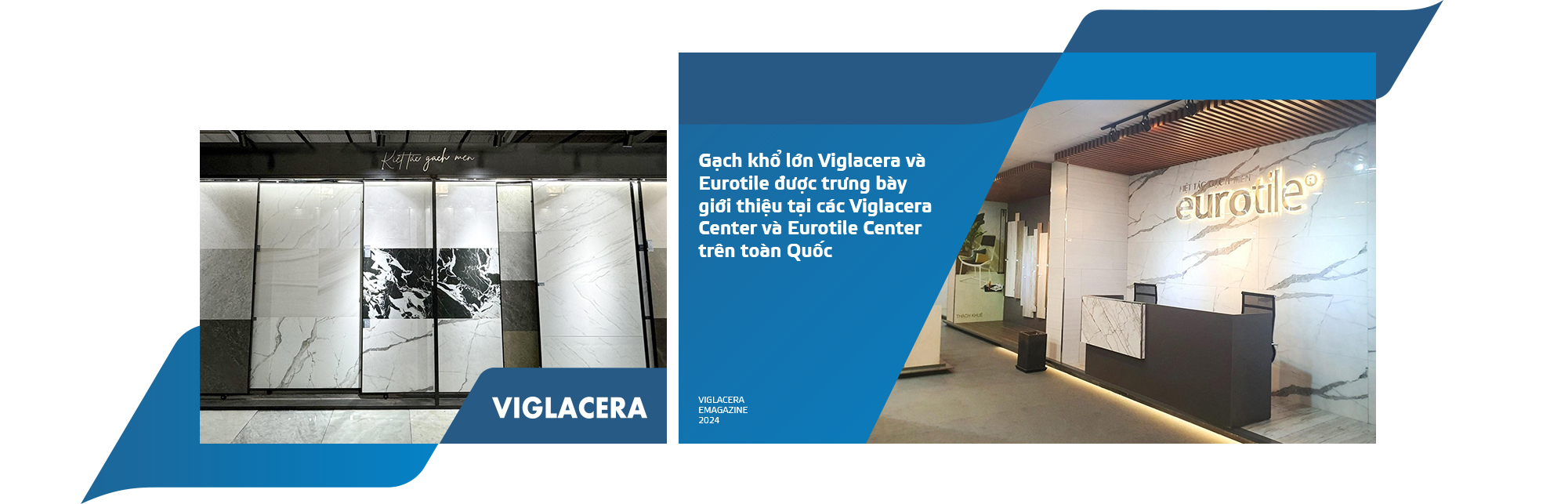 Viglacera sản xuất 2 dòng gạch khổ lớn: dòng thứ nhất nhất mang thương hiệu Viglacera; dòng thứ hai được gọi là Gạch tấm lớn thương hiệu Eurotile. Nhờ kích thước vượt trội so với gạch thông thường, cả hai dòng đều giúp nâng cao trải nghiệm đặc sắc cho khách hàng.