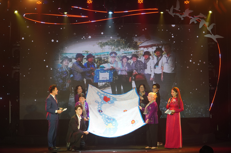 | Mô hình “Tổ Phụ nữ nhân ái” tại Khu phố 2, phường 4, thành phố Bến Tre, tỉnh Bến Tre. Các bà, các chị đã may những tấm mền tranh hình bản đồ Việt Nam có quần đảo Hoàng Sa và Trường Sa. |