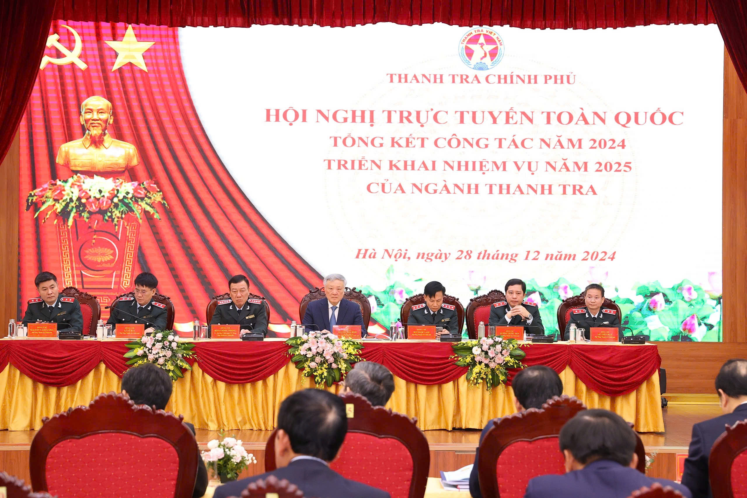 Tổng Thanh tra cho biết, tại Hội nghị, các đại biểu được nghe dự thảo Báo cáo công tác năm 2024, nhiệm vụ trọng tâm năm 2025 của ngành Thanh tra, các bài tham luận và đặc biệt là ý kiến chỉ đạo của đồng chí Nguyễn Hòa Bình, Ủy viên Bộ Chính trị, Phó Thủ tướng Thường trực Chính phủ đối với ngành Thanh tra.Theo đó Tổng Thanh tra Chính phủ Đoàn Hồng Phong đề nghị các đại biểu tập trung nghiên cứu, trao đổi, thảo luận các nội dung thiết thực, hiệu quả. Trên cơ sở đó đánh giá những kết quả nổi bật về công tác thanh tra, giải quyết khiếu nại, tố cáo và phòng, chống tham nhũng, tiêu cực năm 2024; Chỉ ra những tồn tại, hạn chế để có những giải pháp khắc phục, phấn đấu hoàn thành xuất sắc mọi nhiệm vụ năm 2025 mà Đảng, Nhà nước giao cho ngành Thanh tra.