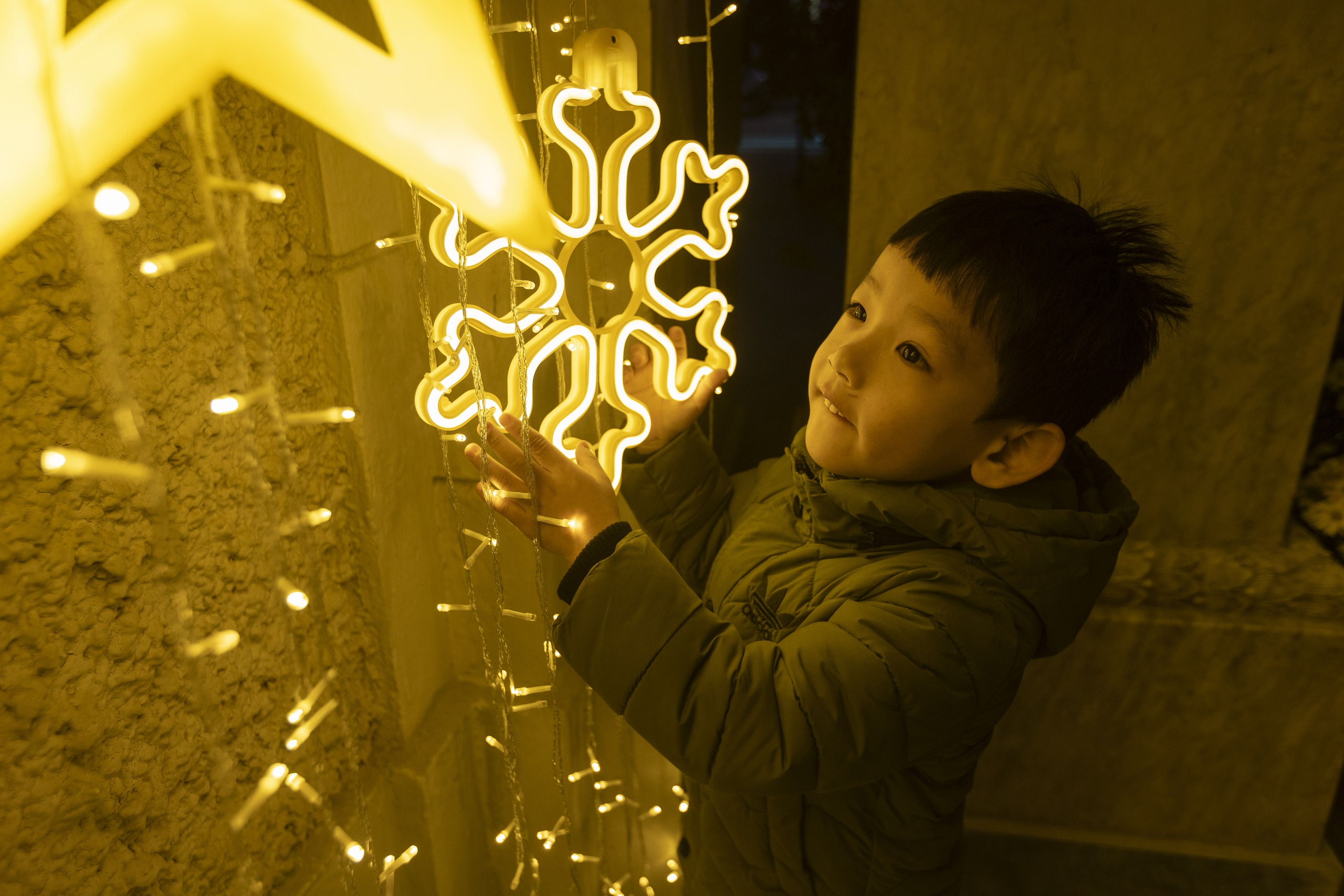 Cậu bé 5 tuổi này năm nào cũng được mẹ đưa tới Nhà thờ Hàm Long chơi dịp Noel. Năm nay, cậu đặc biệt thích những ánh đèn sao, bông tuyết phát sáng nổi bật